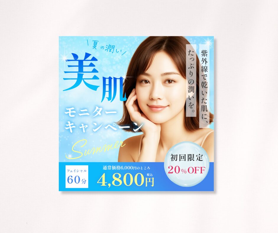 InstagramやFacebookなど、SNS広告用のバナー画像を制作いたします。キャンペーンや季節イベントなど用途に合わせて、パッと目を引くデザインをご提案いたします。訴求ポイントをしっかり伝えるわかりやすいデザインを心がけています。